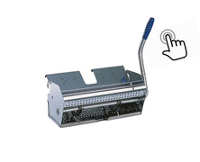 The transmission mechanism of the Clino flat wringer has a defined pressure point, i.e. even if the operator applies force beyond this, no further pressure is applied to the mop cover. The Clino flat wringer thus ensures that each mop cover leaves the wringer with the same residual moisture. At the same time, the transmission mechanism ensures that the necessary pressure can be built up with little effort and that the wringer opens again automatically.