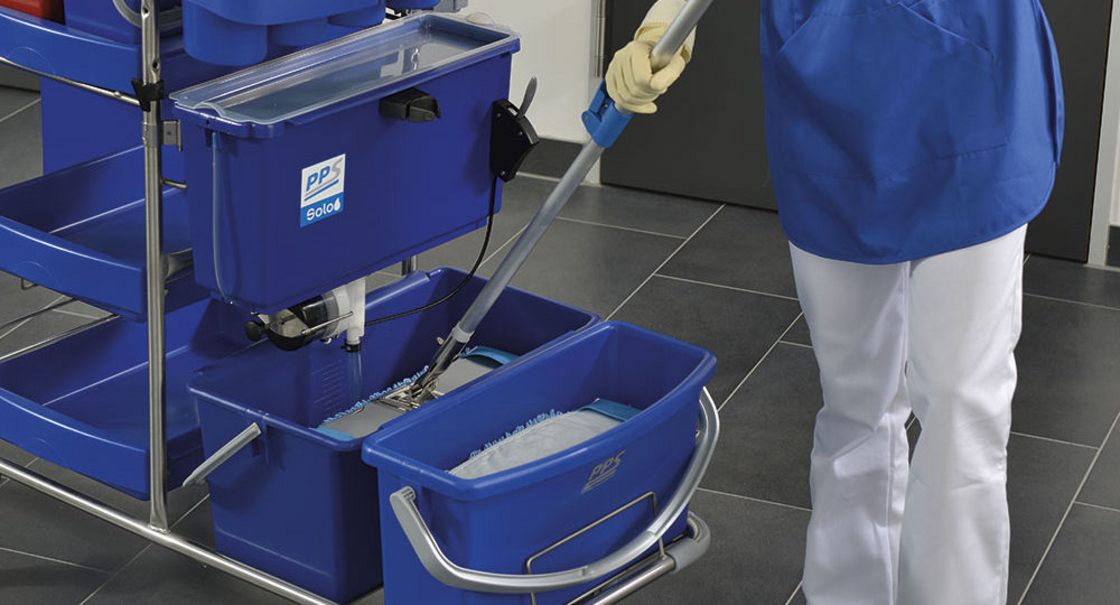 The innovative dosing system Solo relocates the preparation process of mop covers directly to the system trolley. The exact impregnation of fluid between 150 and 300 millilitres enables an precise adaption to the to be cleaned surfaces. The mop preparation takes place directly before the use. Thus long service lives are no issues. The precise dosing increases the security to receive steady results.
