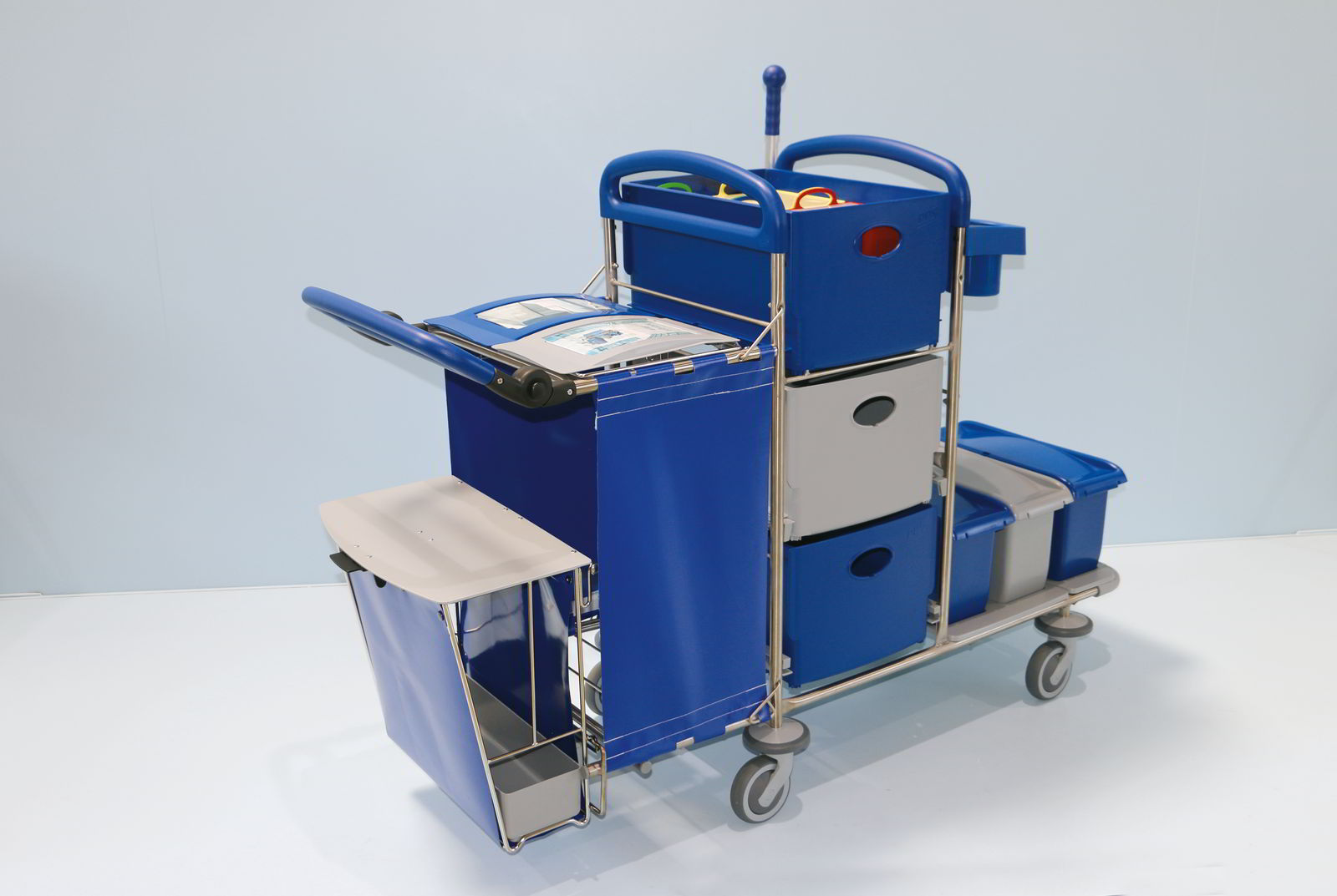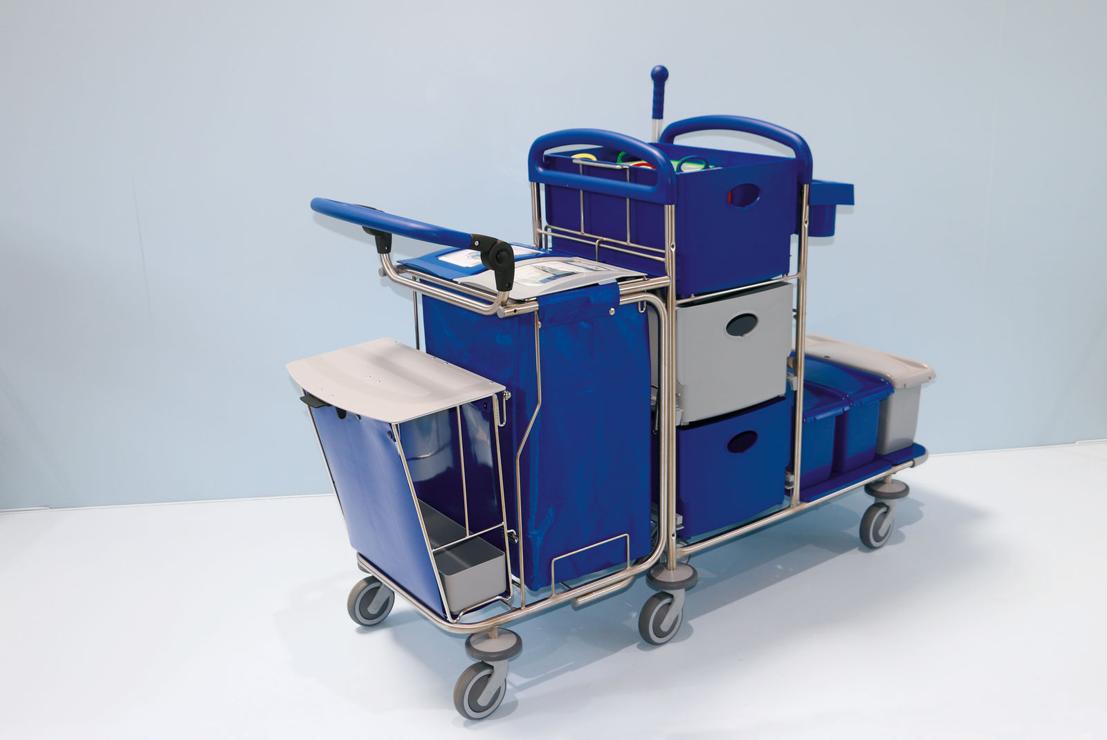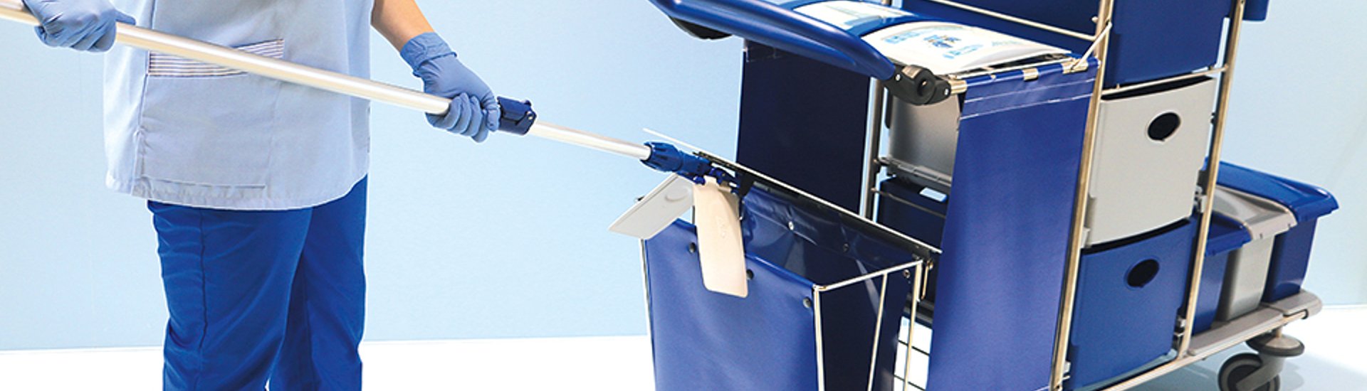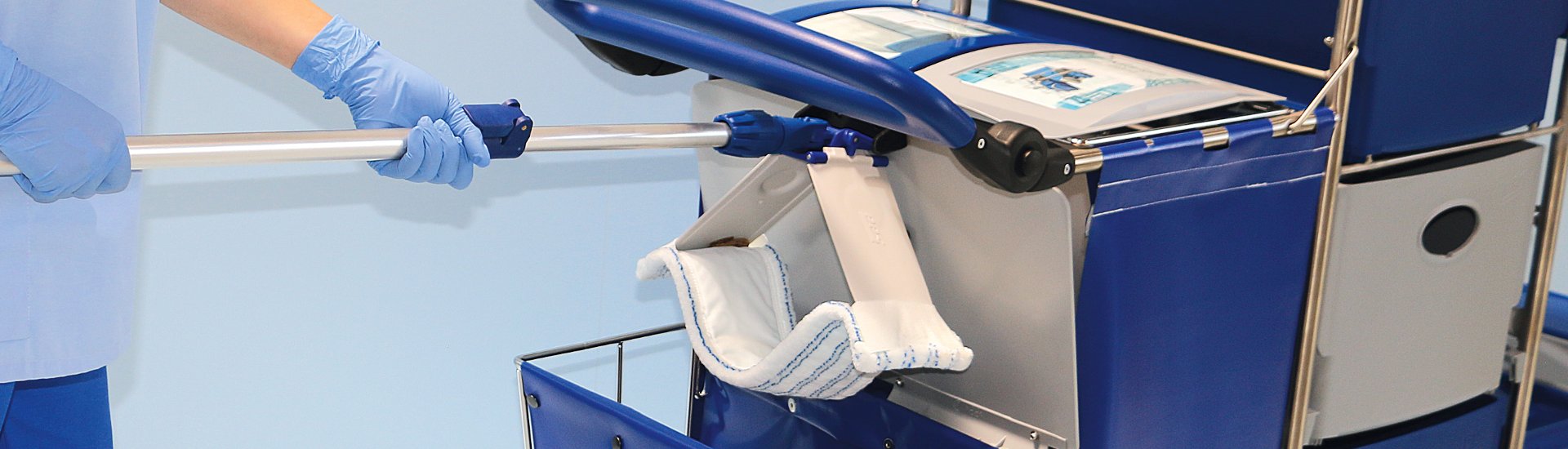 Particularly critical areas for the spread of cross-contamination by hand contact are mop, mop holder and disposal container. If contact with these components can be avoided, the risk of bacterial spread can be significantly reduced.