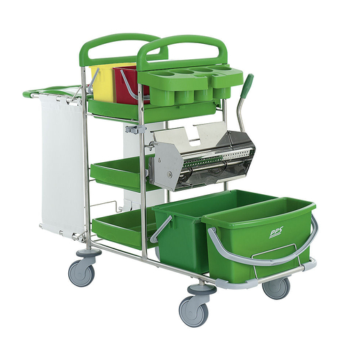 - Floor cleaning: flat wringer stainless steel, sterilisable; mop-reuse-technique, the mop is used for more wiping processes