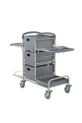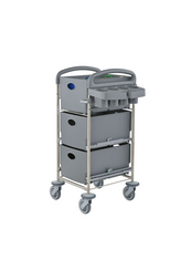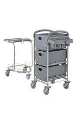 The compact system trolley for maximum storage space on minimum area with detachable disposal unit made from recycled materials.