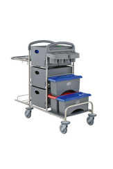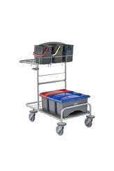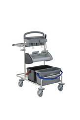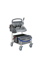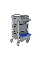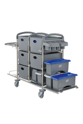 The system trolley for cleaning in the healthcare sector made from recycled materials.