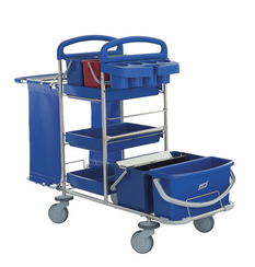 The ergonomically optimised system trolley for the professional facility cleaning.