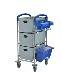 Closed appearance, open function: the system trolley with the tried-and-tested flat wringer Clino stainless steel (sterilisable).