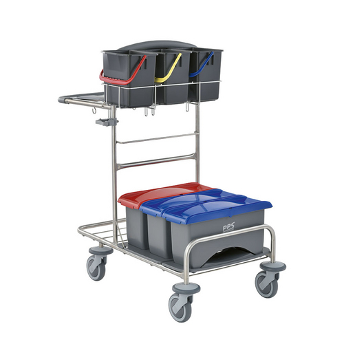 1 Schale-R und 1 halbe Schale-R für Clino® Systemboxen 3 Clino® Systemboxen-R Einhängekorb mit 3 Eimern 6 L-R Gerätehalterung |