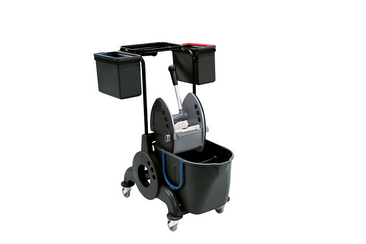 Der große Reinigungswagen für die Vorpräparationsmethode mit Easy-Mop Systemboxen aus Recyclingmaterial.