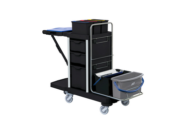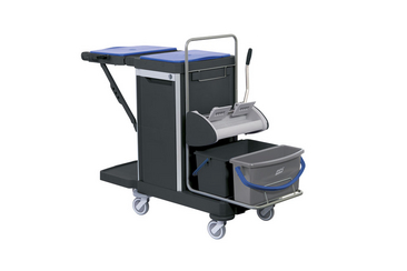 Der offene Systemwagen mit Stauraum und Entsorgung für die Vorpräparations-Methode EasyMop aus Recyclingmaterial.