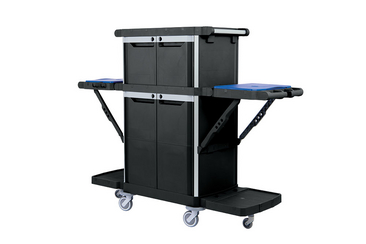 Hotelwagen mit ausreichend Platz, absperrbaren Türen und Wäscheabwurf aus Recyclingmaterial.